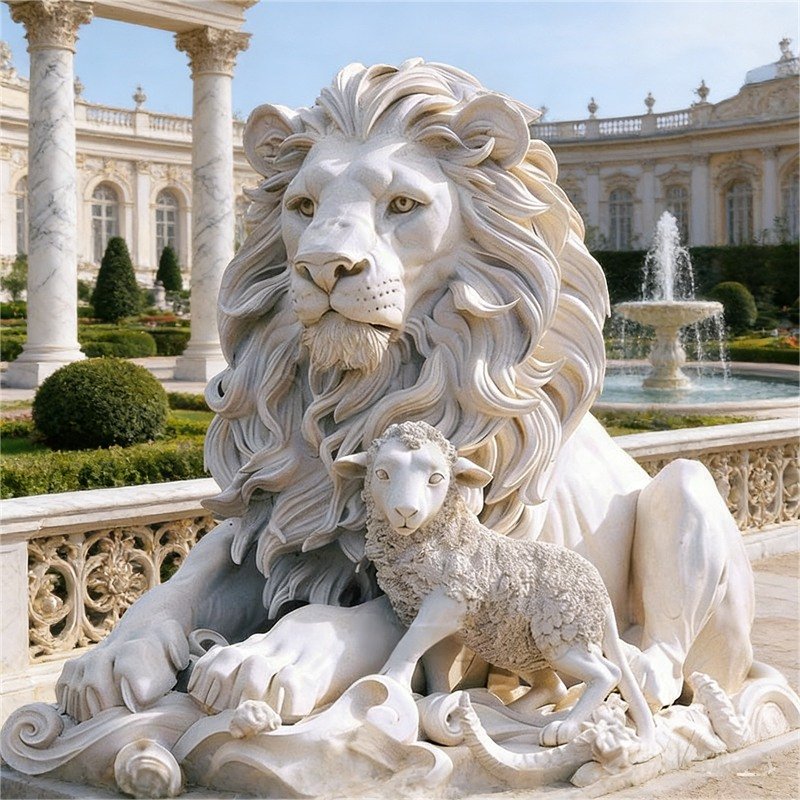 Marble is one of the best materials for a lion and lamb statue.