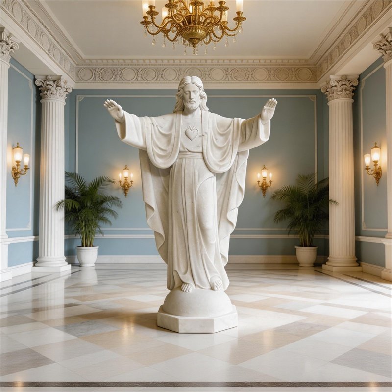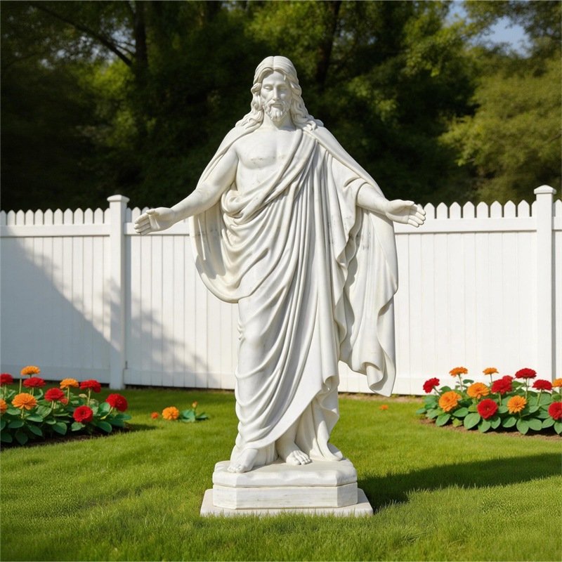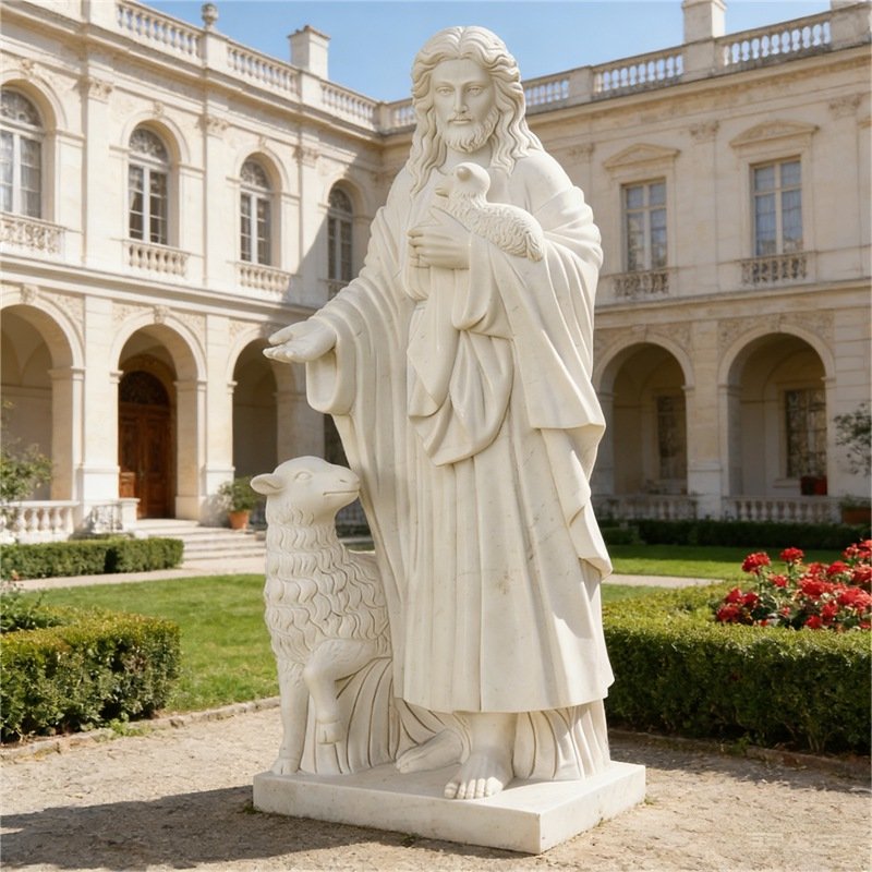Marble is widely favored choice for religious statues due to its fine veins, workable hardness, and ease of carving, allowing sculptors to render delicate features and a sense of compassion with remarkable precision. When polished, marble can achieve a warm, subtly translucent surface that lends sacred figures a quiet, luminous presence.